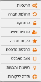 התנתקות: בוחרים בסעיף זה כדי לצאת מנתוני החברה. אם רוצים לחזור ולהיכנס לחברה יש להקליד מחדש את סיסמה.